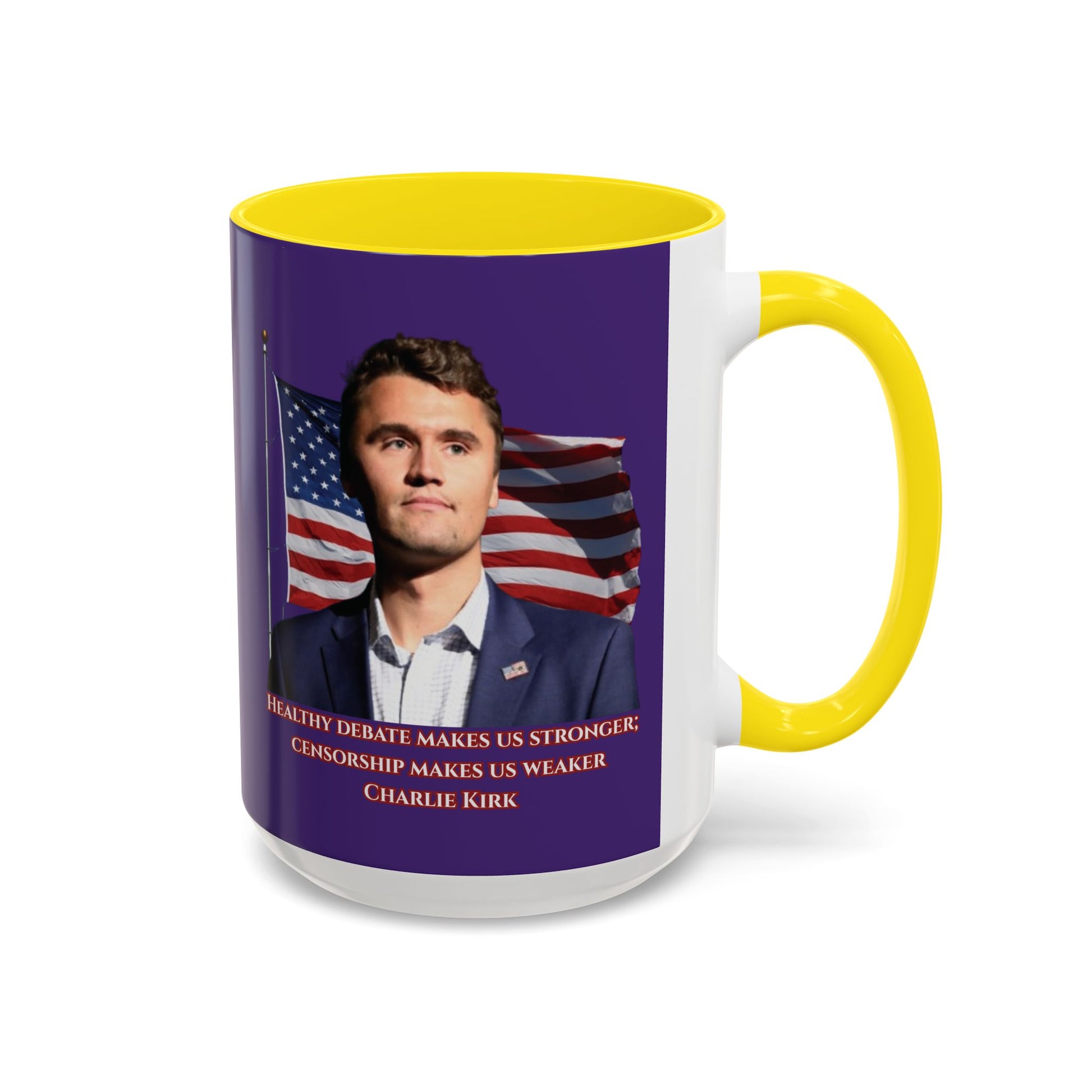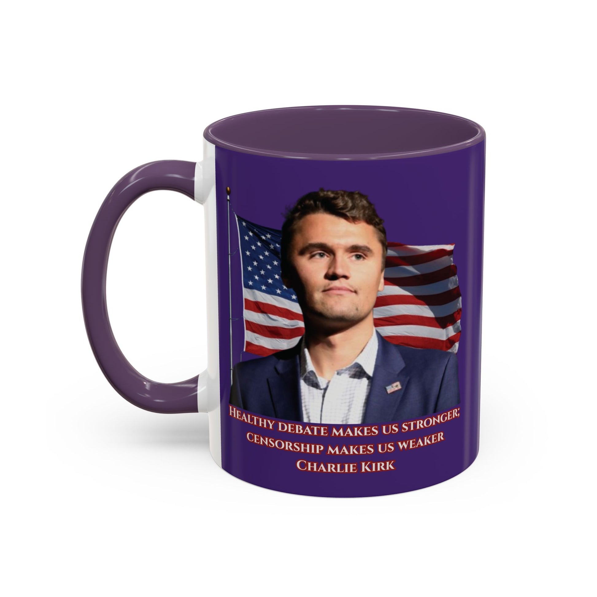 Charlie Kirk, Healthy Debate Purple Accent Mug by theGreenDragonTavern.shop