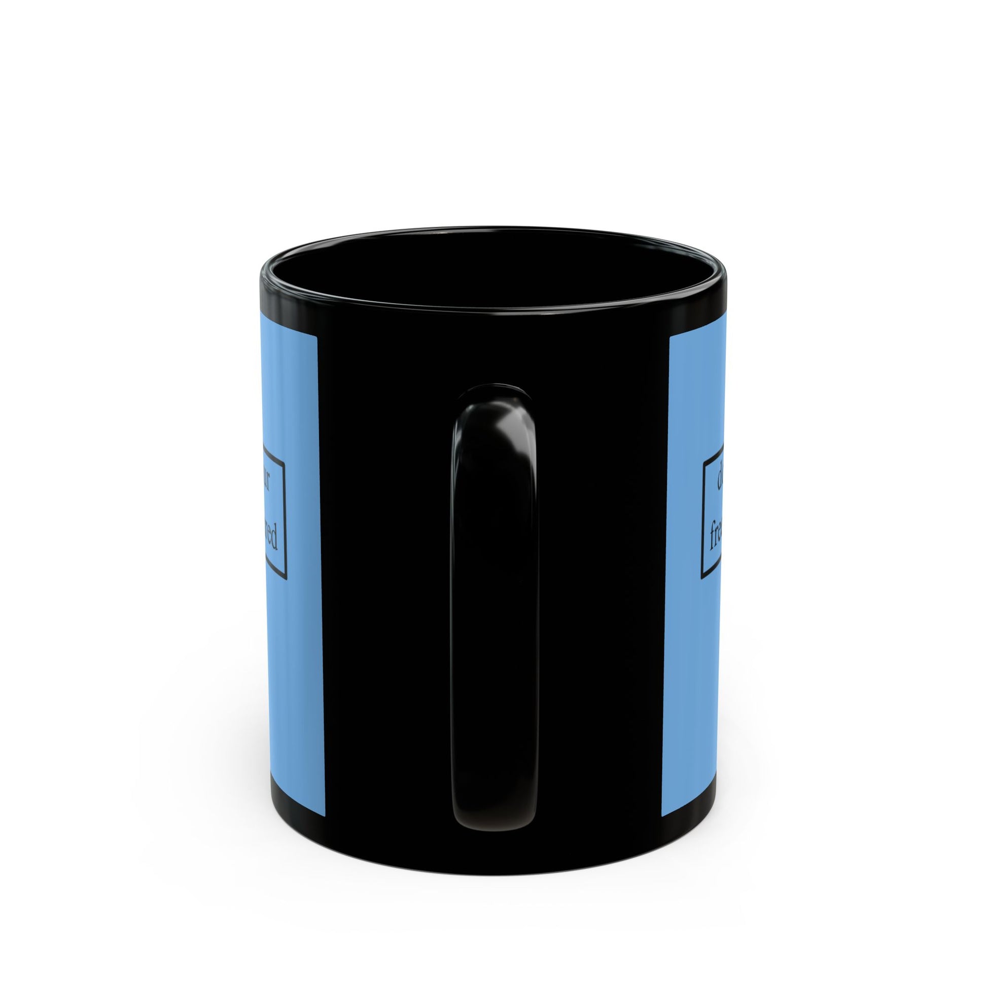 Protect your hot beverage with this powerful reminder: don't assume your freedoms are assured Black font Light Blue Mug by theGreenDragonTavern.shop