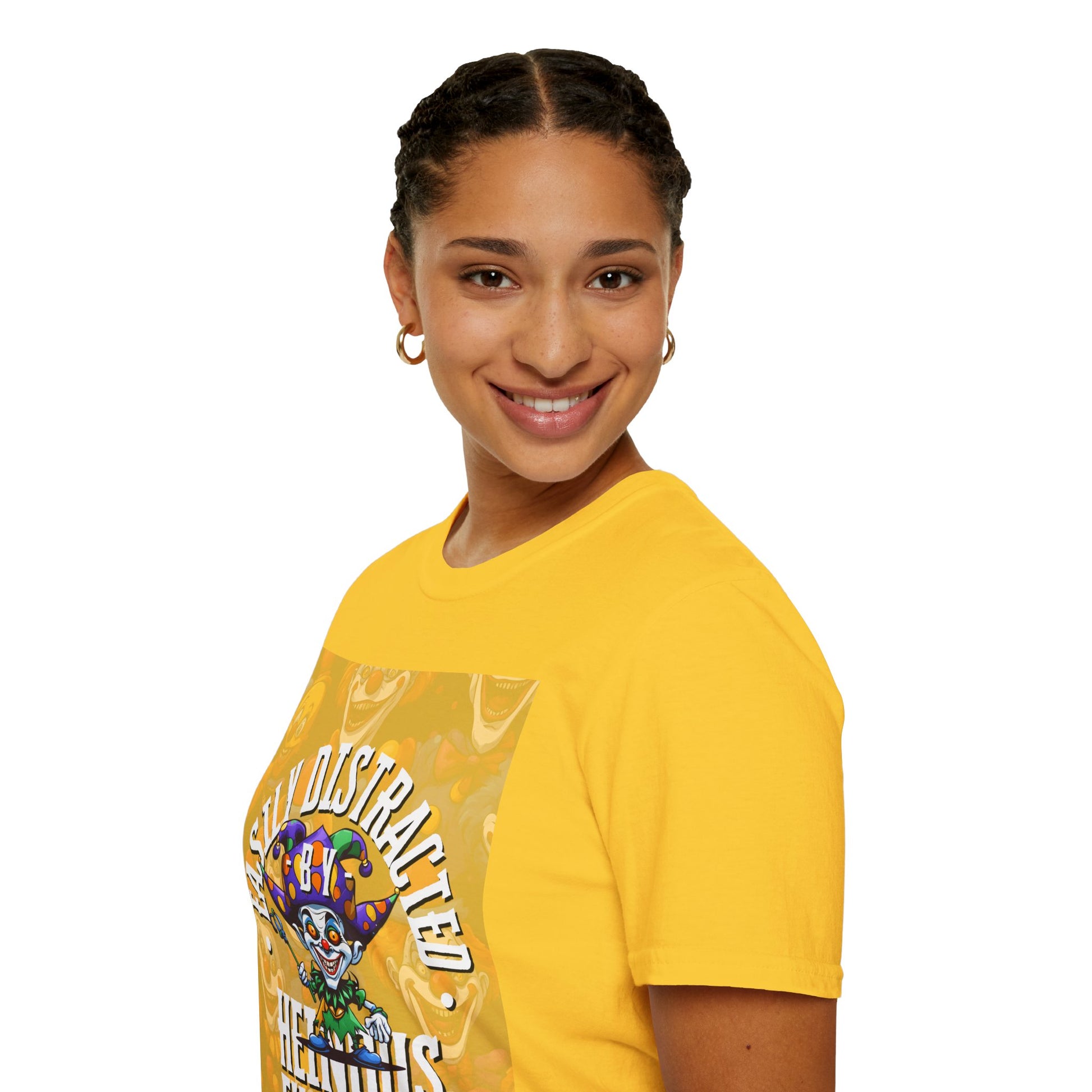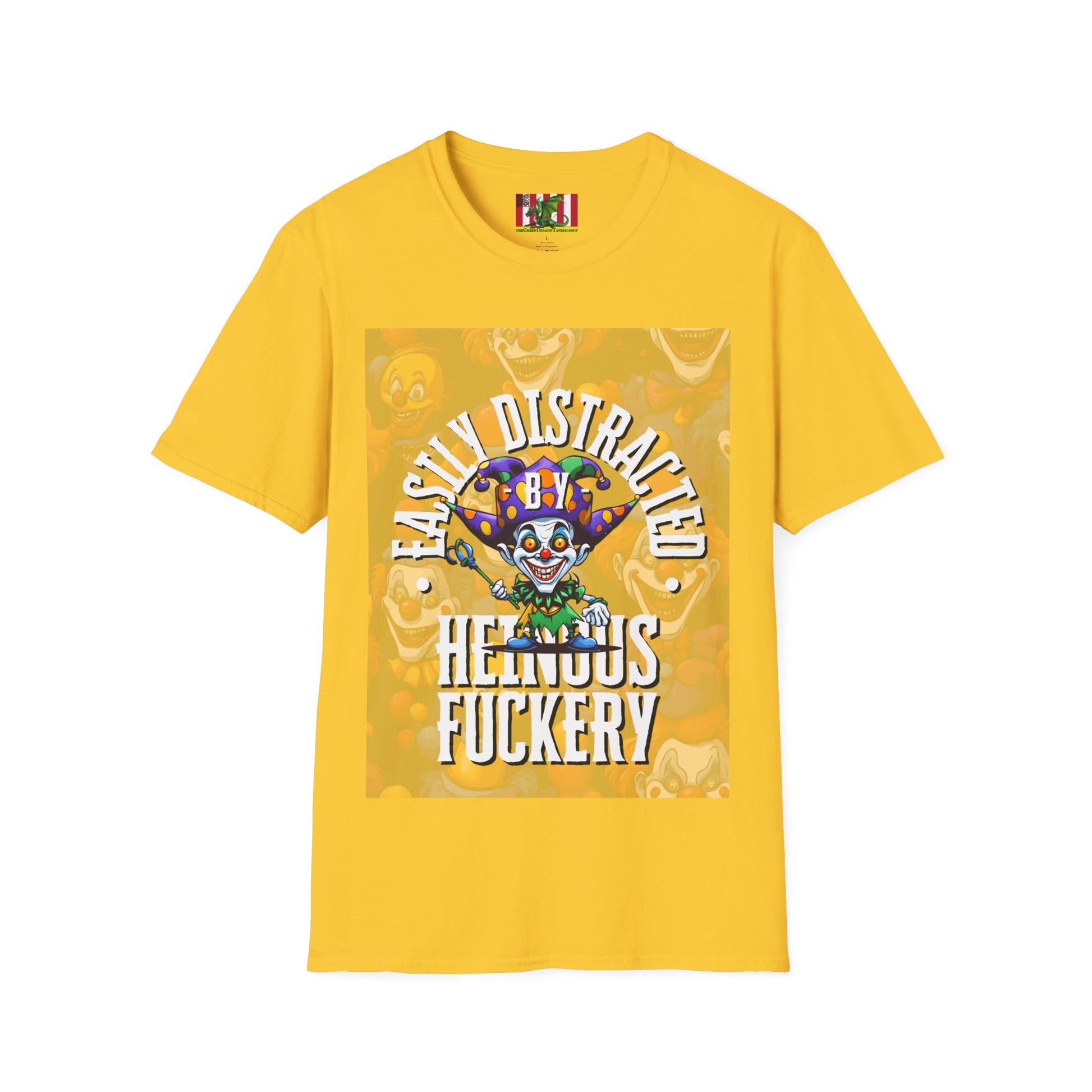 Are you tired of ordinary shenanigans? Bored with run-of-the-mill pranks? It's time to kick things up a notch with Heinous Fuckery – your ticket to the wild side of absurdity! Show your support for watching hilarity, elaborate hoaxes, and epic acts of tomfoolery come to life. Don't settle for mediocre entertainment – watch the absurd while wearing Easily Distracted by Heinous Fuckery Little Jincs Light colors Unisex T-Shirt by theGreenDragonTavern.shop