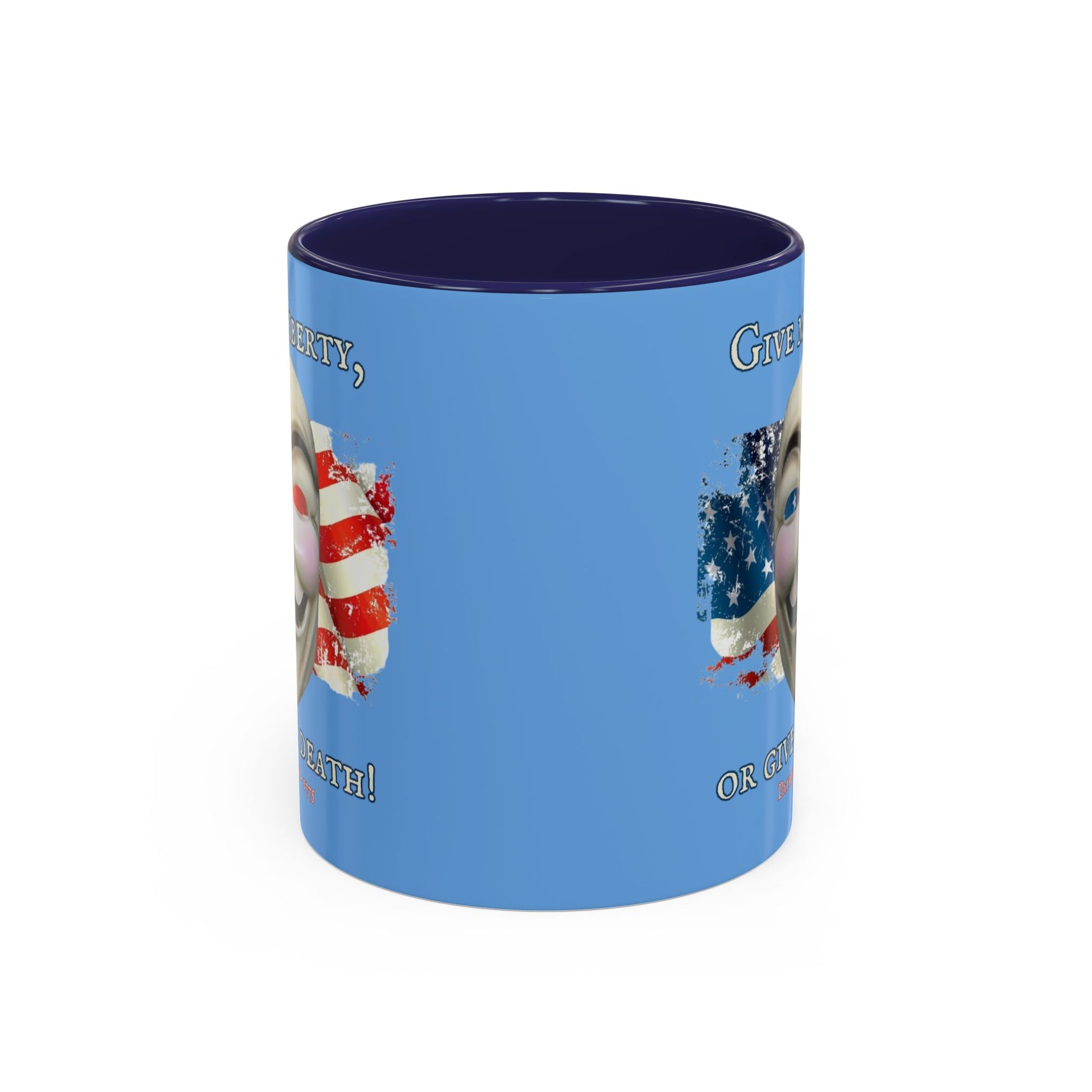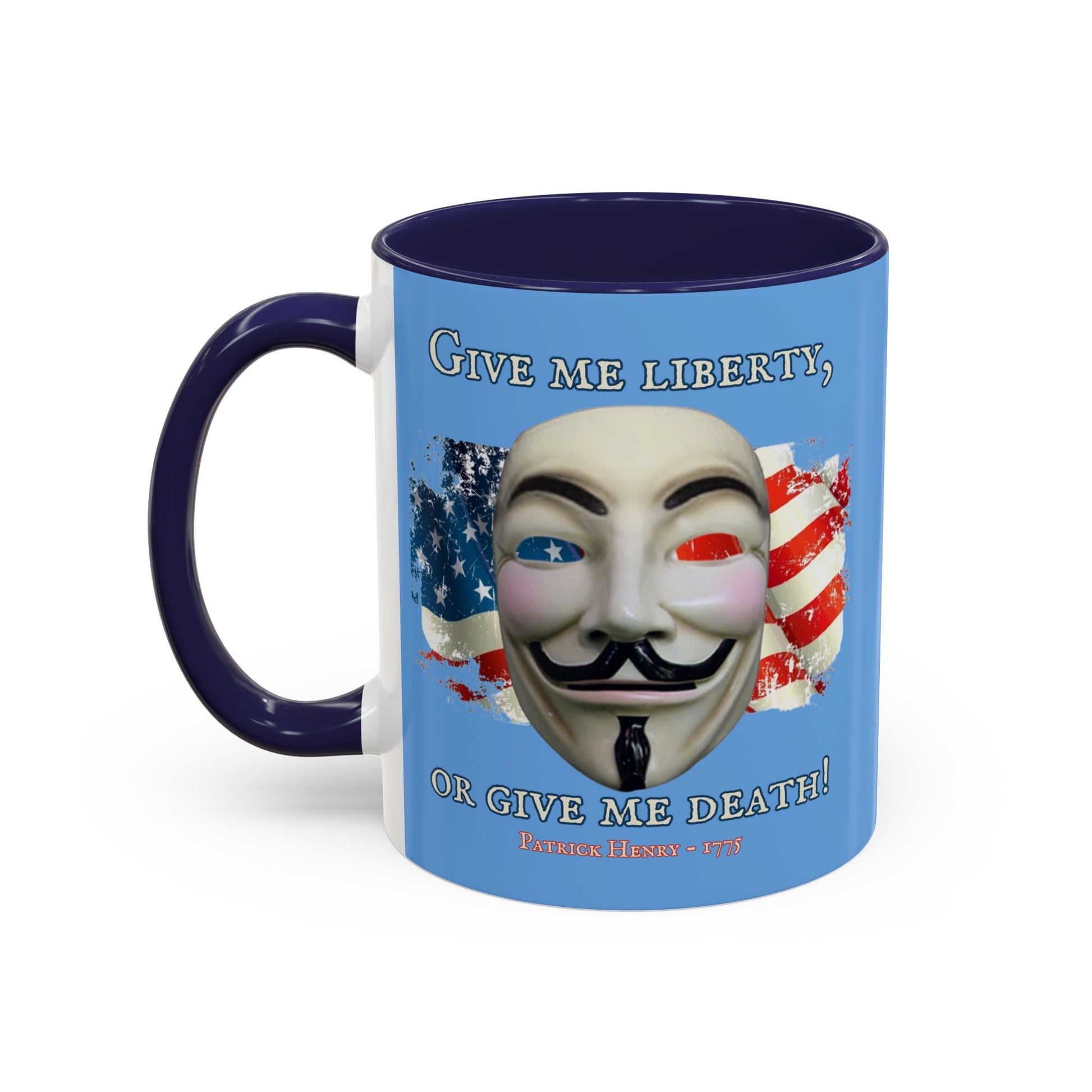 Vendetta, "Give me liberty, or give me death!" Blue Accent Mug by theGreenDragonTavern.shop